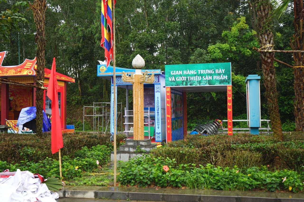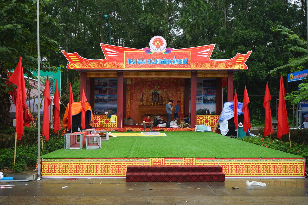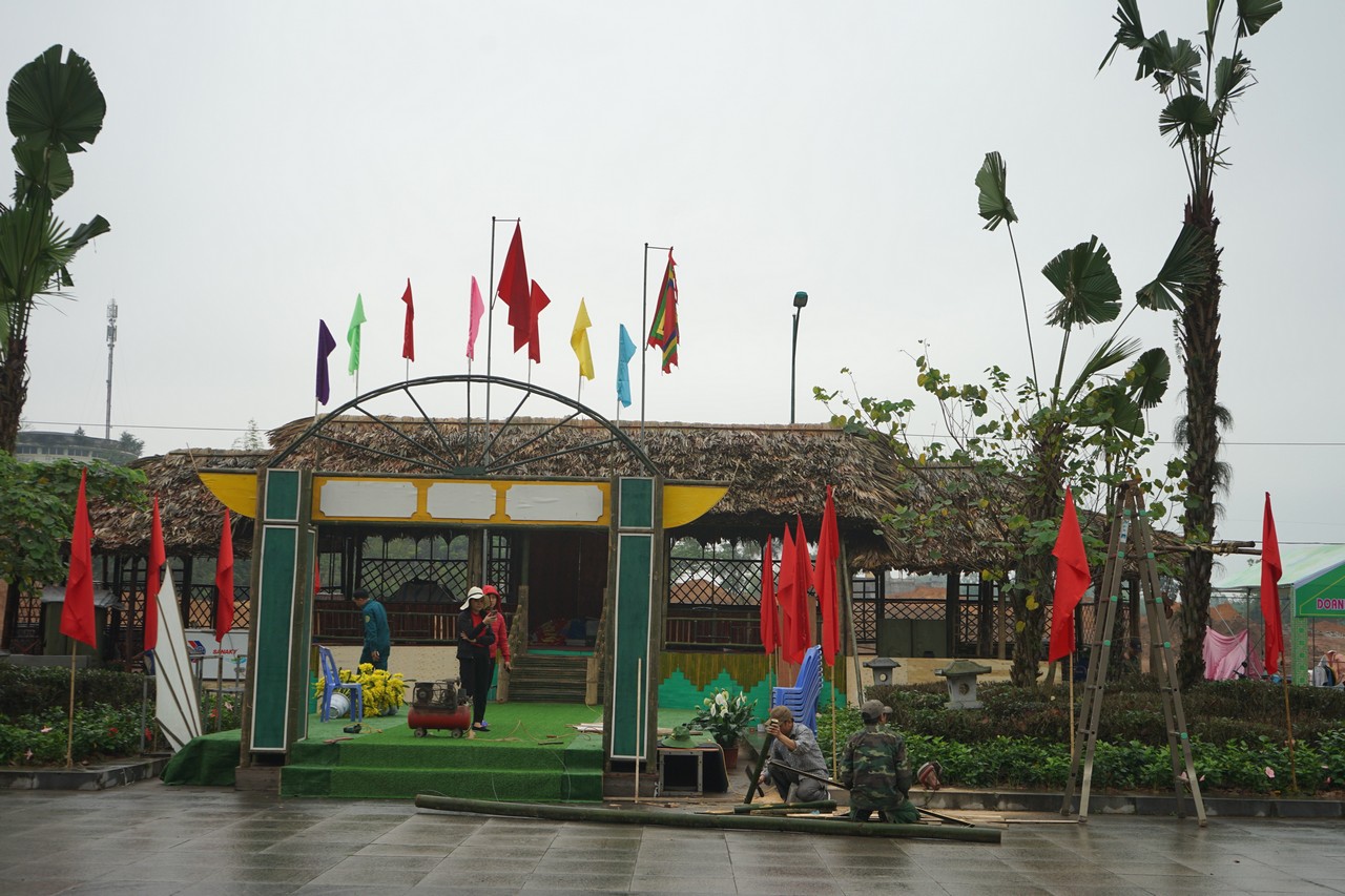 | 훙신사 축제는 성대하게 치루어진다. 이것은 또한 방문객에게 푸토 성 관광의 이미지를 홍보할 수 있는 기회이다. 참여 단체는 자신의 부스들을 신속하게 완성시키고 있다. |