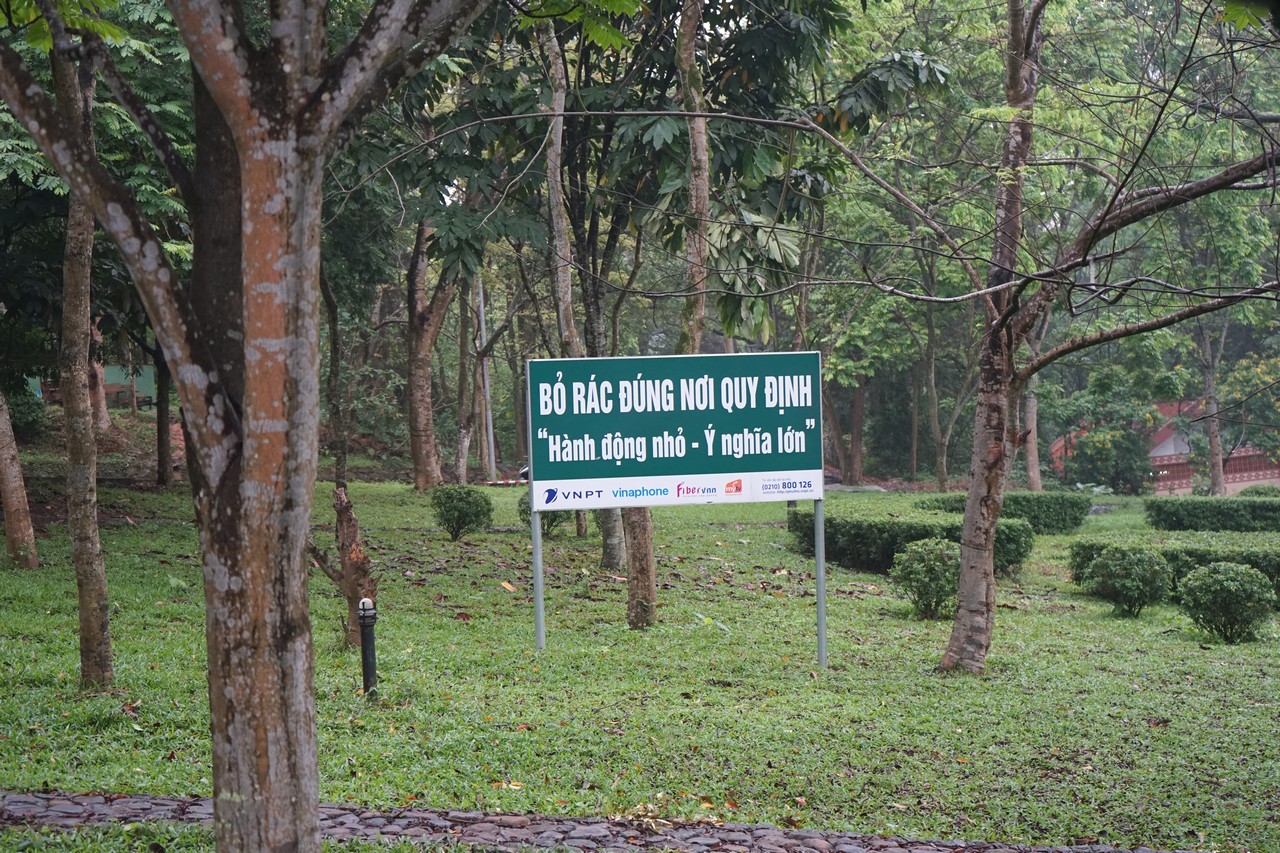 | 신사 구역 안에 여러 곳에서 관리 위원회는 환경 보호를 위한 쓰레기 무단투기 금지 표지판을 설치했다. |