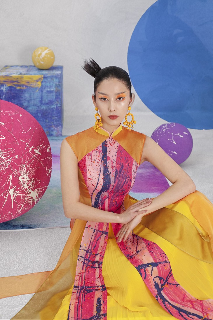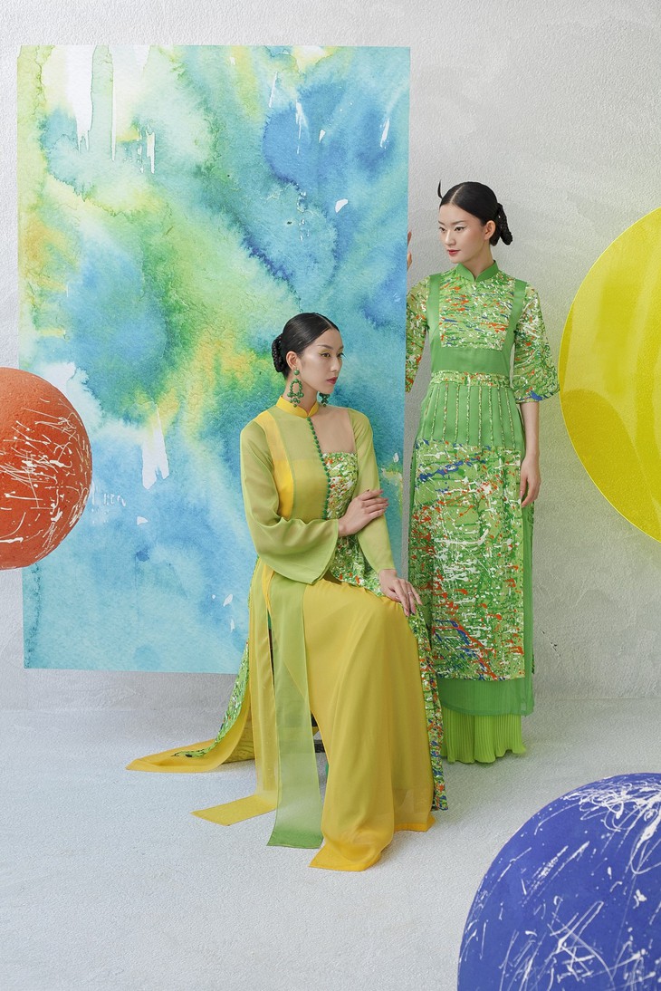 패션에 회화적인 요소를 접목한 Kenny Thai 디자이너는 '발색' 아오자이 켈렉션에 젊고, 신선한 느낌을 선사한다.