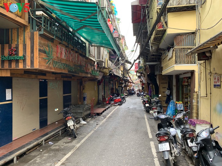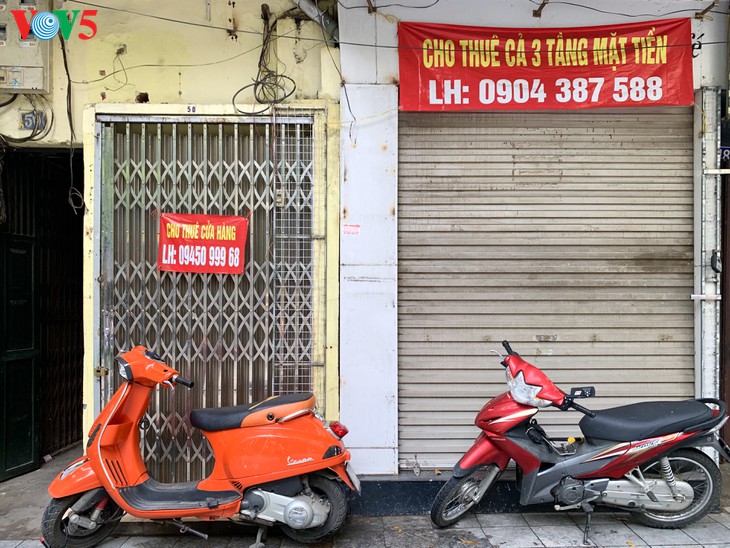 | 하노이 옛거리는 늘 장사로 바글바글한 곳이었다. 그러나 코로나19로 인해 많은 가게가 폐점되거나 코로나19가 끝나기를 기다리며 잠시 영업을 중단하고 있다. 폐점된 업소는 대부분 여행사, 옷가게, 음식점, 스파 등이다. 아직 남아있는 가게들은 거의 자택에서 운영하고 있어 임대료 부담이 없는 곳들이다. |
