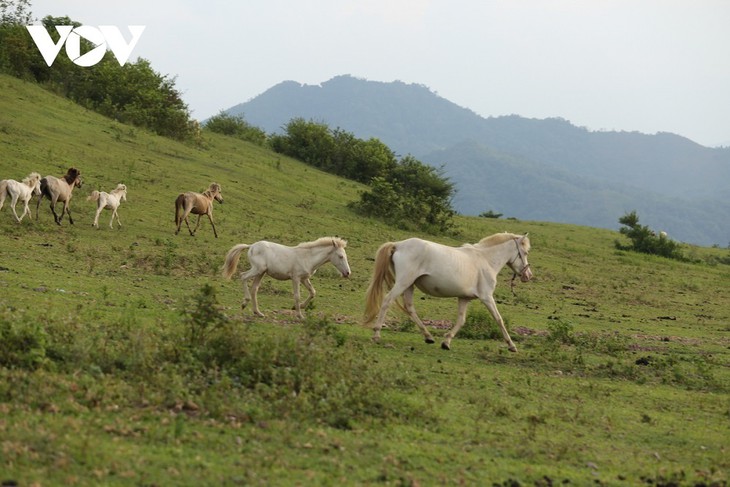 카우사오에는 수천 마리의 말이 방목되어 있다. 특히 이곳은 전신이 흰색, 피부가 분홍빛, 눈 가장자리가 분홍색인 특징을 가진 순백마 품종이 있다. 사진: baolangson.vn
