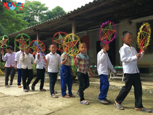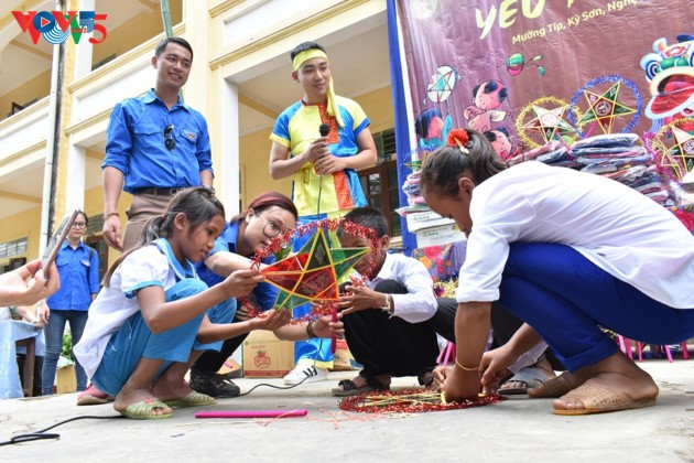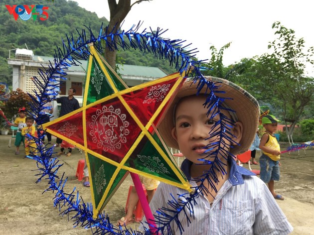 학생들은 베트남 추석 때의 익숙한 놀이개 및 별램프 등을 처음으로 직접 만들어 봤다. |