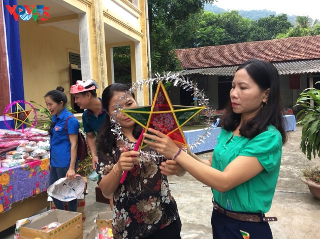 Muong Tip 주둔 병사들이 선생님들과 함께 베트남 소리방송국 청년단이 진행하는 사랑한 추석행사를 같이 준비했다. |