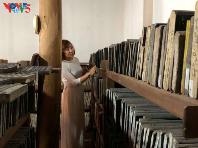 현재 사원에는 약 300 년 전 Le Canh Hung (1740-1786) 왕 재위 기간 및 그 이후에 Lam Thien 파 선사들이 목각한 1,953 개의 목판이 남아 있다. |
