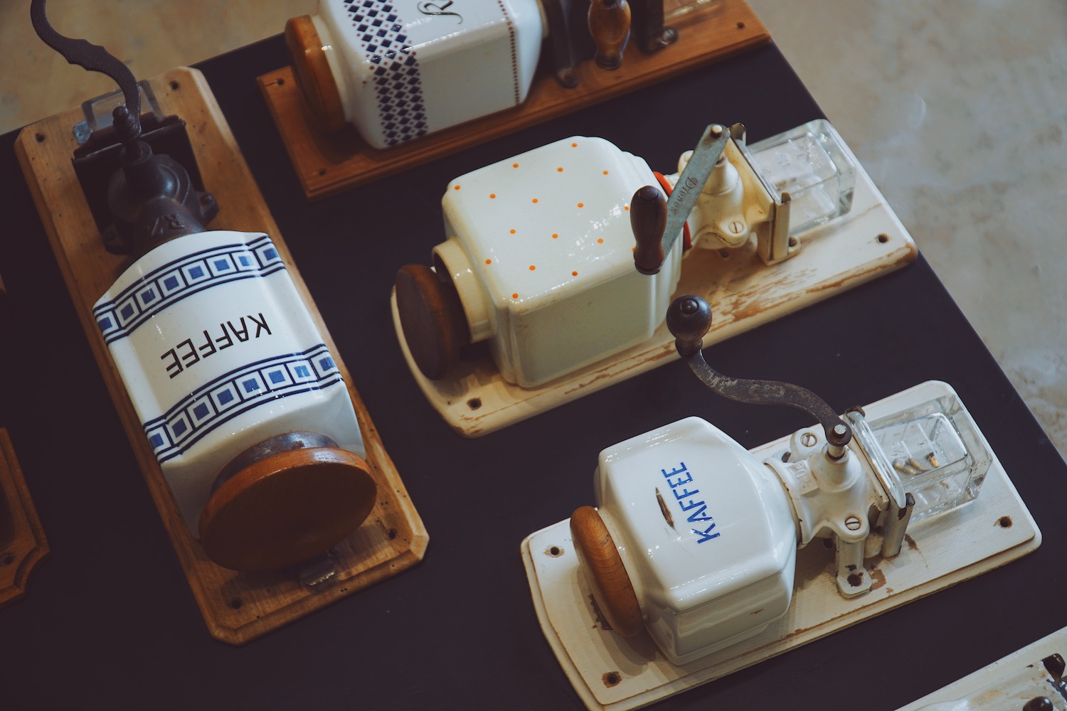 독일의 옌스 버크 박물관에서 가져 온 수 백년이 된 커피 제조 기구들도 전시되어 있다.