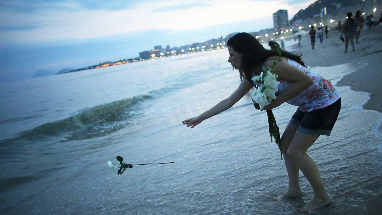 브라질 사람들이 바다의 여신인 '예만자'에게 흰색 꽃을 바치는 풍속이 있다. 수 천 명의 브라질 사람들은 꽃을 파도에 띄워 보내며 새해에 복을 많이 받기를 기원한다. |