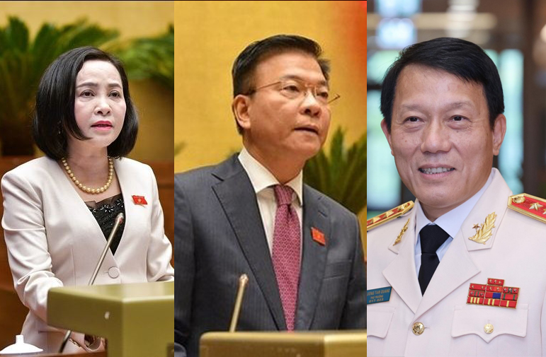 (왼쪽부터) 응우옌 티 타인 국회 부의장, 레 타인 롱 부총리, 르엉 땀 꽝 공안부 장관 |