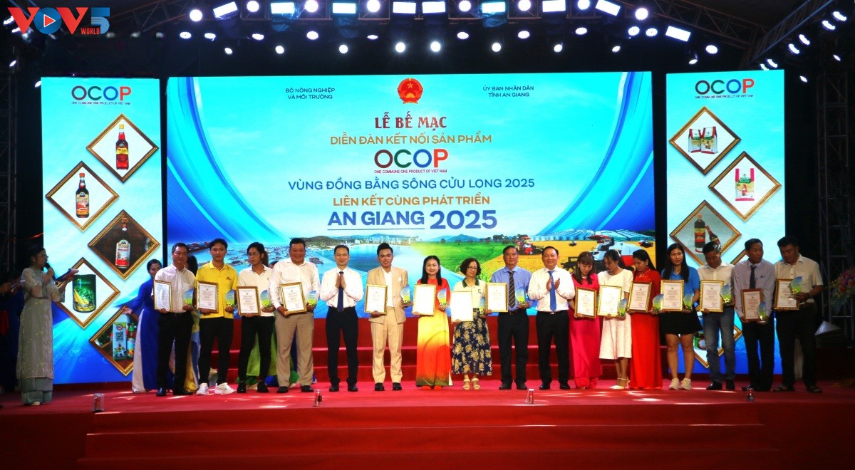 ‘2025년 메콩강 삼각주 지역 OCOP(‘한 마을- 한 상품’ 국가 프로그램) 상품 연계 포럼 모습 (사진: VOV) |