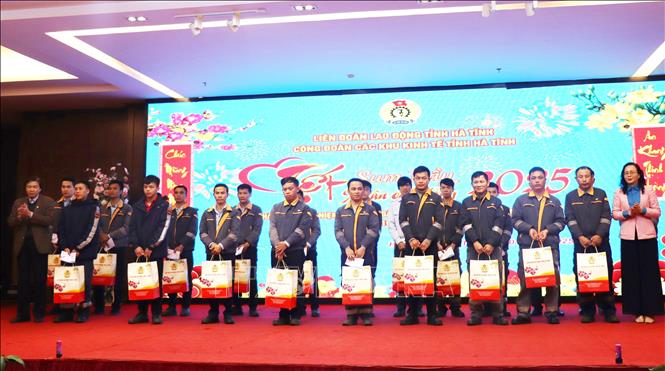 하띤성 경제구역 내 형편이 어려운 노동자들을 위한 설 선물 전달식의 모습 [사진: 호앙 응아/ 베트남통신사] |