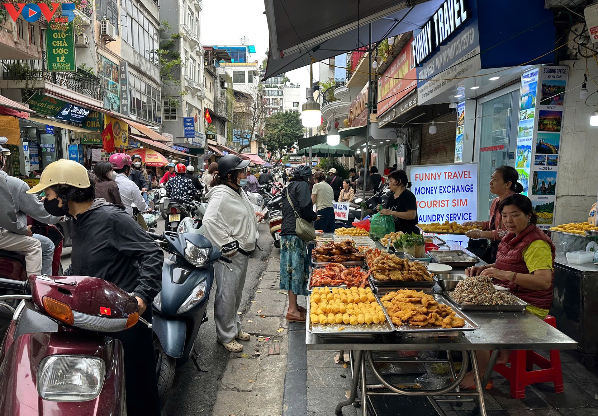 정월대보름을 맞아 제사 음식을 준비하려는 시민들로 북적이는 하노이시 항배(Hàng Bè) 전통시장 모습 (사진: 바 또안/ VOV1) |