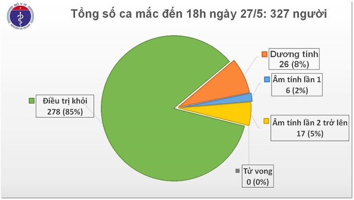 5 월 27 일, 2호 열대성질병센터의 6 명의 환자가 완치되었다고 발표되었다. 베트남은 코로나 19에 감염된 모든 환자의 85 %를 차지하는 278 명의 환자를 완치했다.