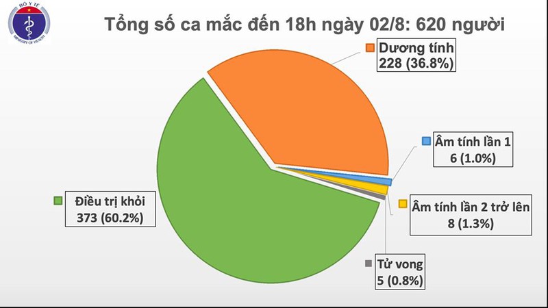 이 중 한 명은 베트남 입국 직후 집중 격리에 들어갔다. 이에 따르면 8월 2일 오후까지 전국의 코로나19 누적확진자는 620명이며 이 중 373명이 완치되었으며 5명이 사망하였다.