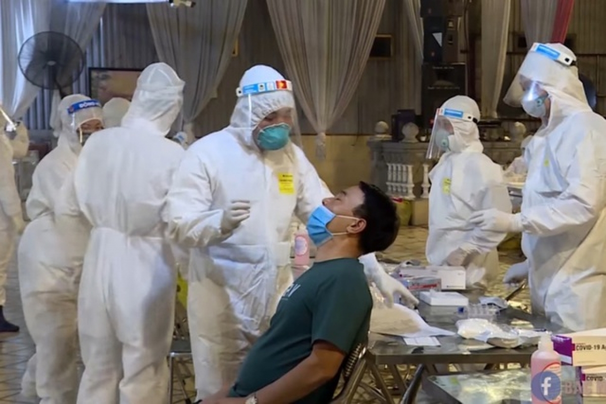 박닌성에 위치한 산업단지의 F1, F2 및 노동자를 위한 검채를 채취하고 있는 의료간부 |