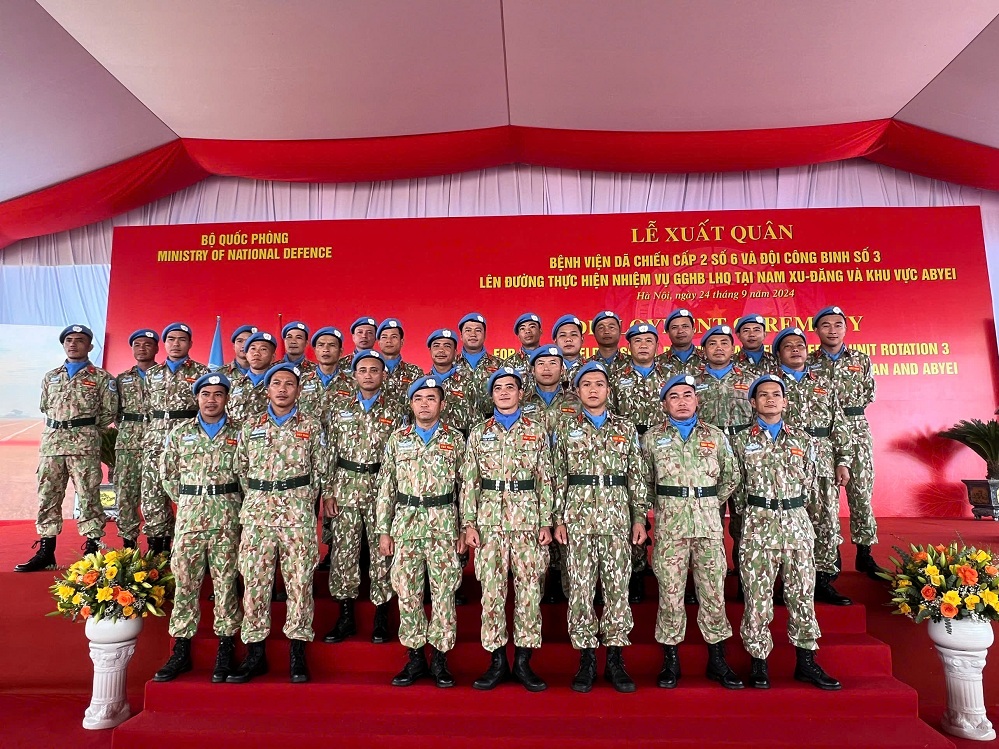 출정식에서 보 티 아인 쑤언(Võ Thị Ánh Xuân) 부주석은 베트남의 국기를 6호 2급 야전병원 및 3호 공병대 관계자들에게 전달했다. 이날 부주석은 지난 10여 년 동안 베트남은 약 900명의 군 사관, 13명의 인민공안 사관을 유엔평화유지군에 파견했으며 이는 베트남 당, 국가, 인민군과 인민공안의 다자외교 작업의 눈부신 성과라고 평가했다. 부주석은 평화유지군에 참여하는 군인들이 유엔에서 베트남의 ‘평화 사절(使節)’로서 베트남 국가와 국민의 이미지를 홍보하는 데 기여해야 한다고 전했다.