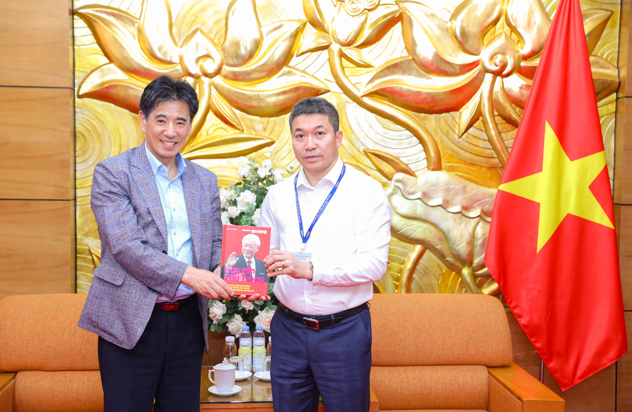 판 아인 선(Phan Anh Sơn) 회장에게 ‘베트남 총비서(서기장) 응우옌 푸 쫑’ 도서를 선물한 권성택 한-베트남 문화경제협회(KOVECA‧코베카) 상임대표