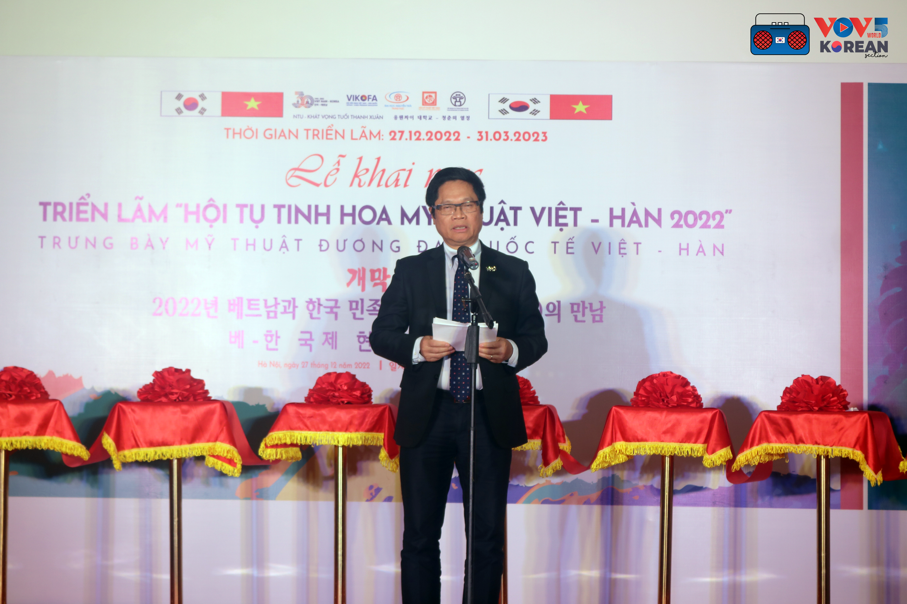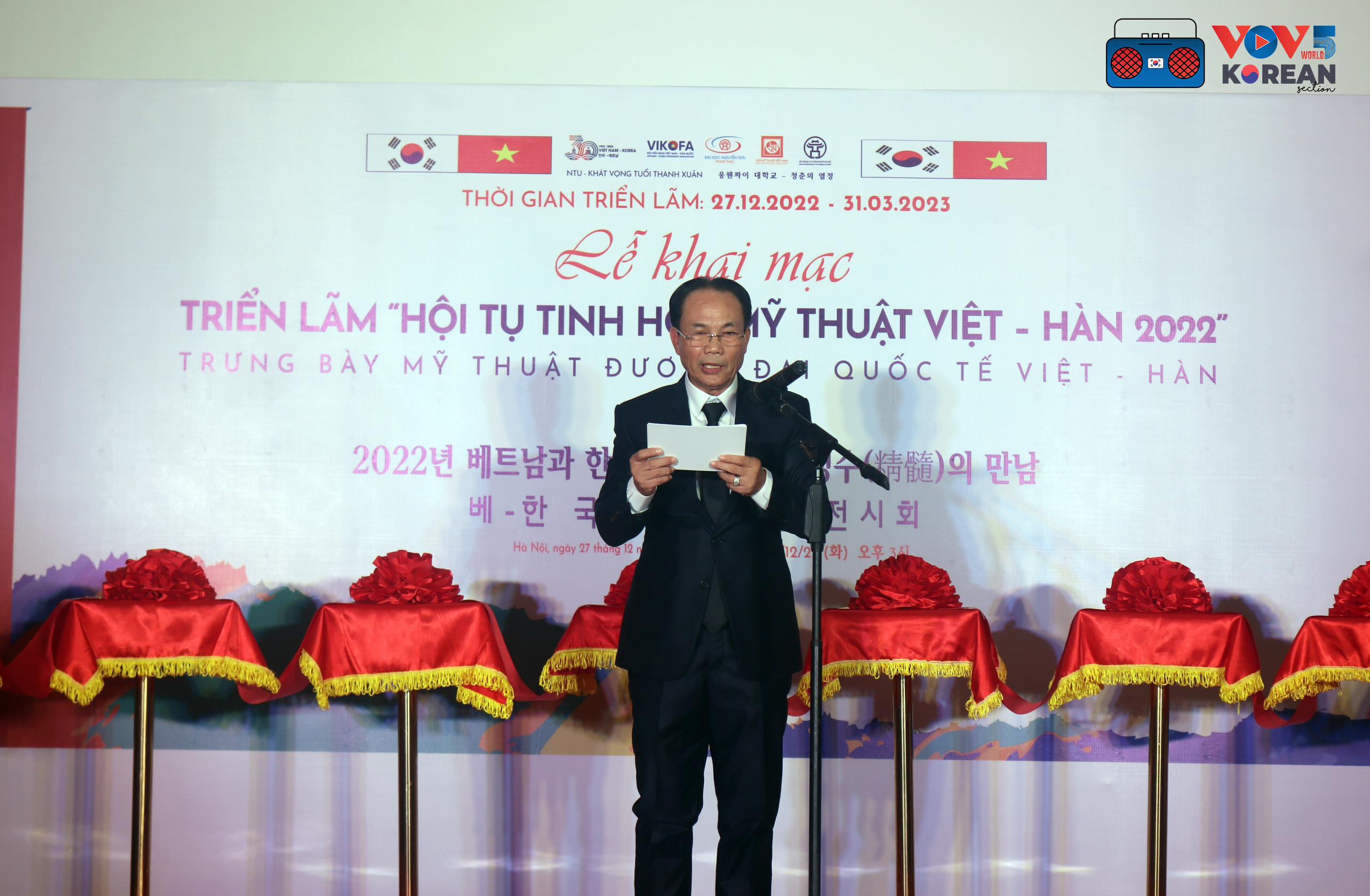 “양국은 성공적인 30년을 지나며 이제 양국 국민 간 우호 관계와, 번영하고 행복한 미래에 대한 튼튼한 믿음으로 새로운 30년의 역사를 쓰고 있습니다. 저는 오늘베트남과 한국 민족 문화 정수의 만남 전시회를 통해 위대한 베트남과 한국 국민 간 깊은 우호 관계를 확인할 수 있는 계기가 되리라 믿습니다”