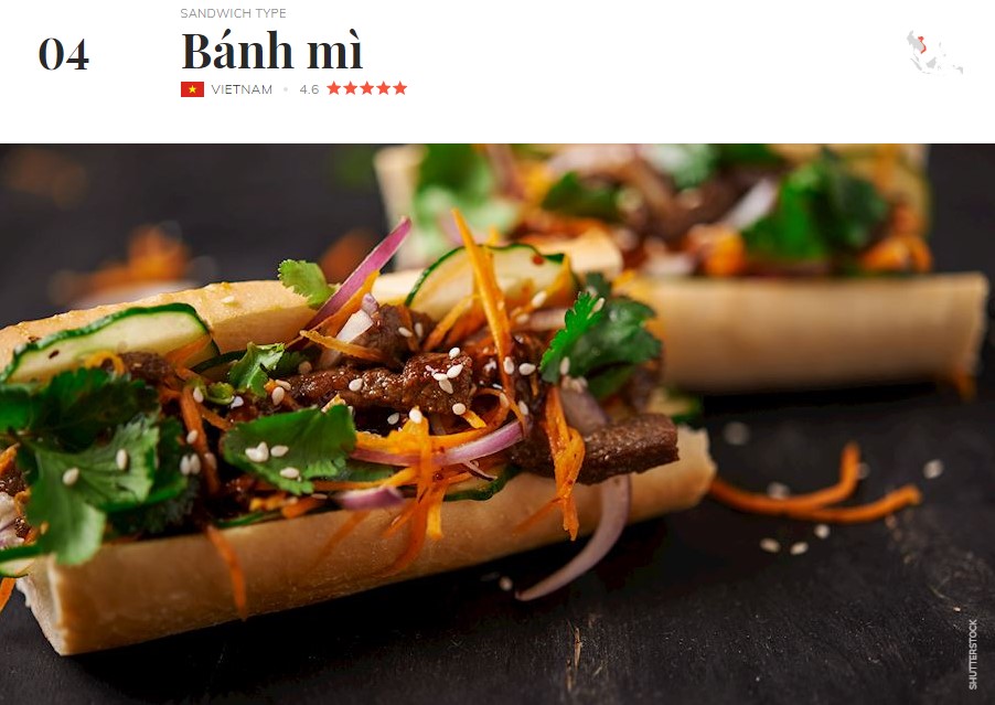베트남 반미는 테이스트 아틀라스에 의해 아시아 유명 길거리 음식 TOP100 명단에 4위로 선정되었다. [사진: congluan.vn] |