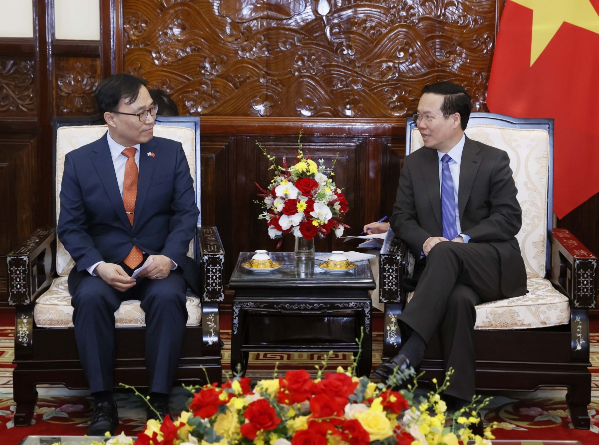 최영삼 대사를 접견한 보 반 트엉 주석 (사진: VOV) |