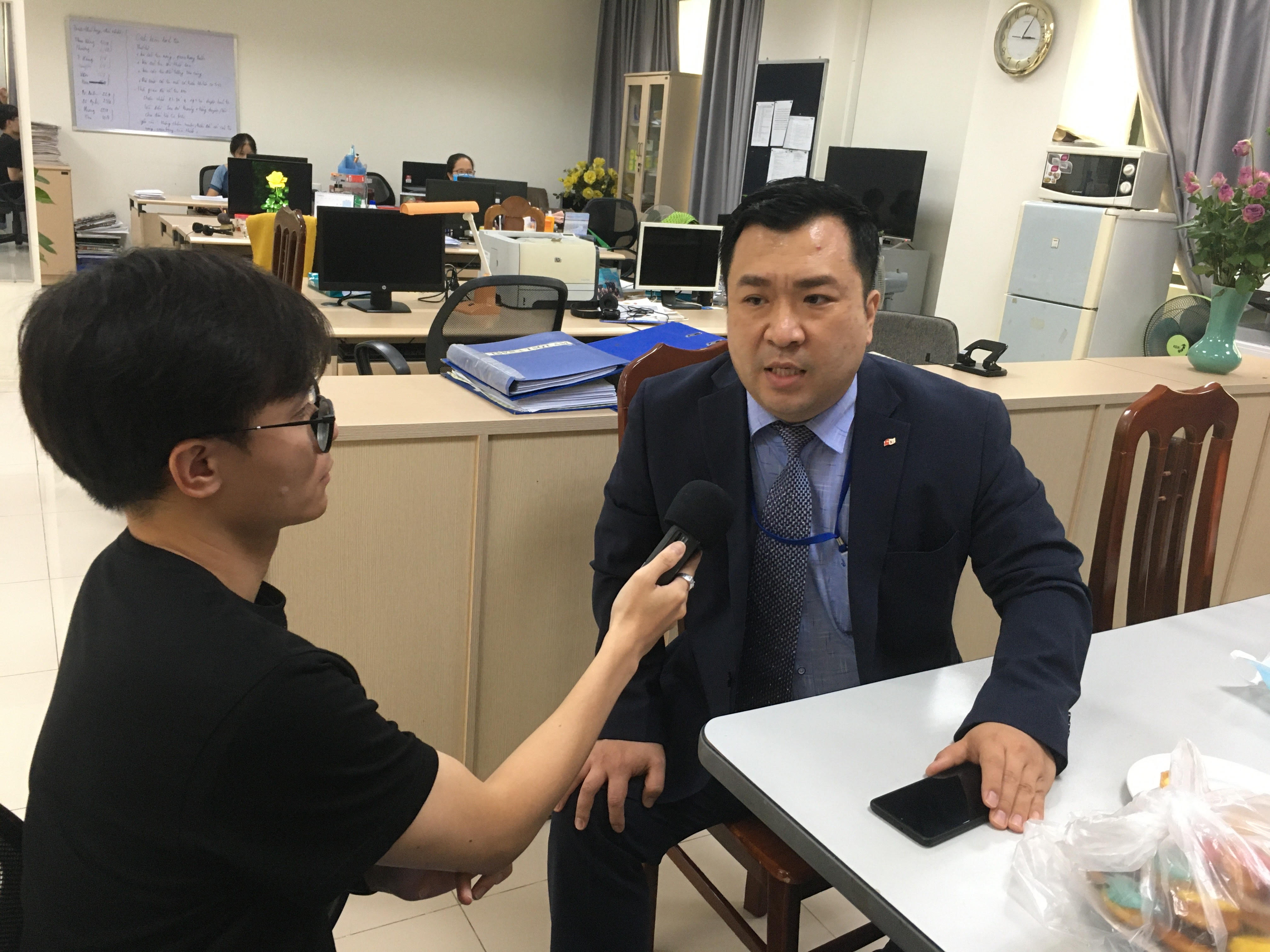 VOV5 기자가 김석환 대표를 인터뷰하고 있다 [사진: VOV5] |