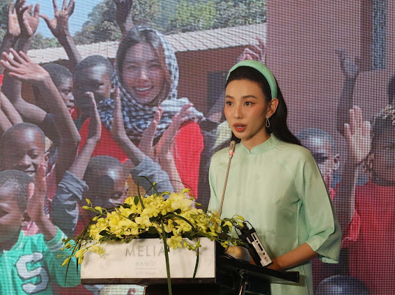베트남 청년들을 대표해 포럼에서 연설한 2021년 미스 그랜드 인터내셔널인 응우옌 툭 투이 띠엔(Nguyễn Thúc Thùy Tiên) |