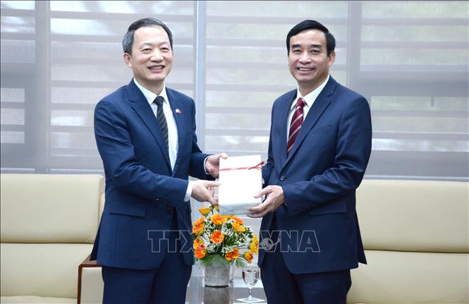 다낭시 인민위원회 위원장 레 쭝 진 (오른쪽) 및 안민식 다낭시 주재 한국총영사 (왼쪽) [사진: 꾸억중/ 베트남통신사]