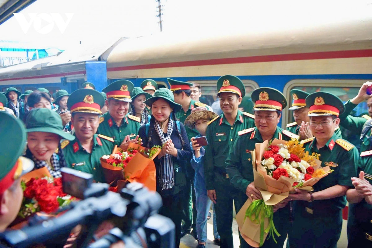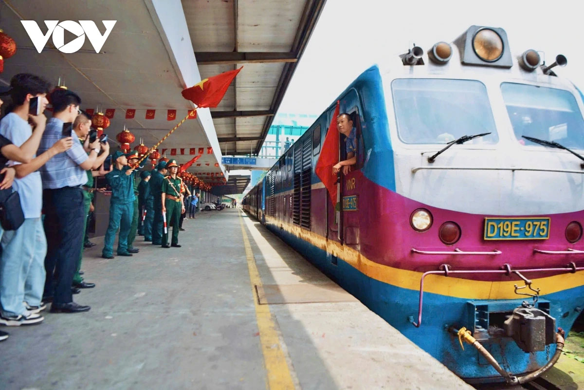 11시 5분에 열병식 및 시가행진에 참여할 군 병력을 태운 첫 열차가 하노이역에 진입했다. (사진: 꾸인 짱/호안 투엔 - VOV) |