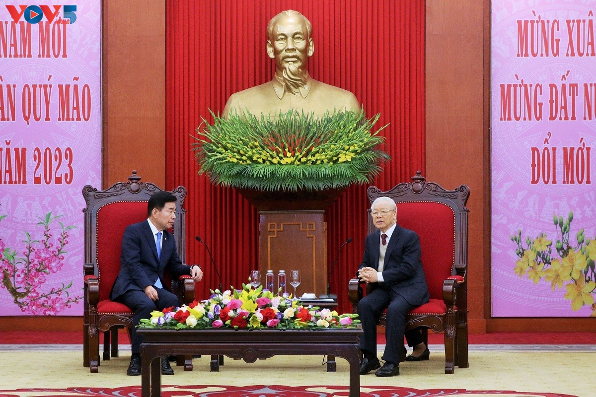 김진표 국회의장은 앞으로 양국 관계를 더욱 강화하자는 서기장의 의견에 동의한다고 화답했다. 김진표 의장은 코로나19 상황에도 지난 기간 베트남이 거둔 경제 사회 발전 성과에 대해 축하를 전하며, 양국 관계가 포괄적 전략적 동반자 관계로 격상된 것에 대해 기쁨을 표했다. 양국 관계는 국제 관계의 모범적인 모델이라고 밝혔다. 또한 양측이 정치, 경제, 문화, 민간교류, 국방안보 등 여러 분야에서 거둔 협력 성과를 지속 발휘해 나갈 것을 희망한다며, 한국은 한-아세안 연대구상(Korea-ASEAN Solidarity Initiative KASI)을 비롯한 지역 내 각종 전략 및 계획에서 베트남의 위치를 중시하다고 강조했다.