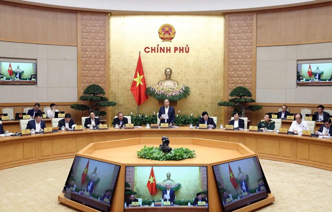 응우옌 쑤언 푹 총리는 2020년 2월 정기정부회의를 주재하는 모습 (사진: Thong Nhat/베트남통신사) |