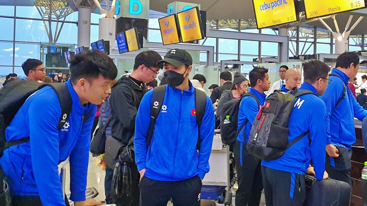 출국하는 베트남 남자 축구 대표팀 선수들 (사진: VOV) |