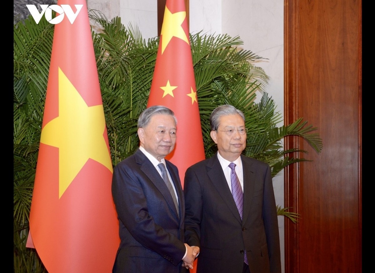 또 럼 서기장‧주석과 자오러지(趙樂際) 전국인민대표대회 상무위원장 (사진: VOV) |