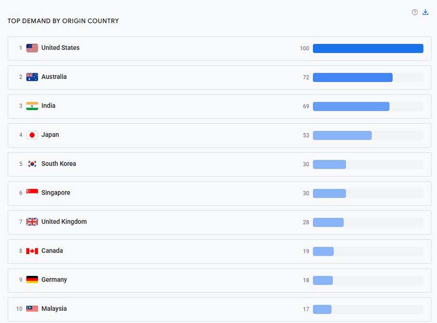 2024년 11월 말부터 2025년 1월 말까지 베트남 관광을 가장 많이 검색한 시장들 [사진: VGP] |