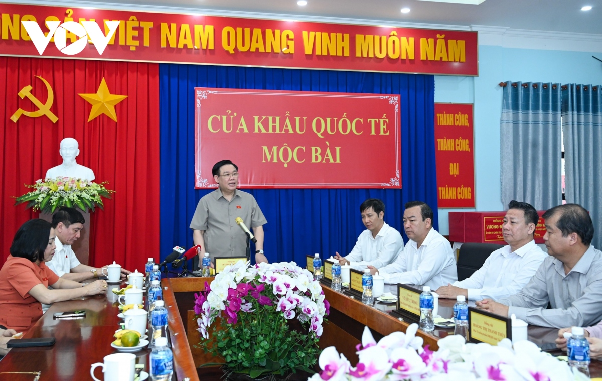 목바이(Mộc Bài) 국제 국경 검문소 간부들과 회의를 가진 브엉 딘 후에 국회의장 (사진: VOV) |