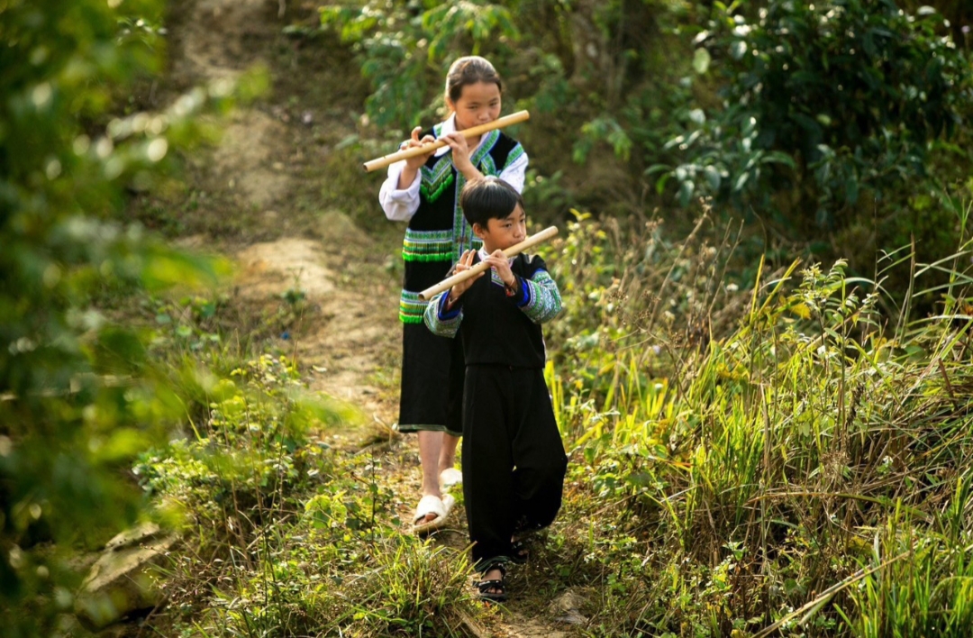 피리를 부는 허몽족 아동 |