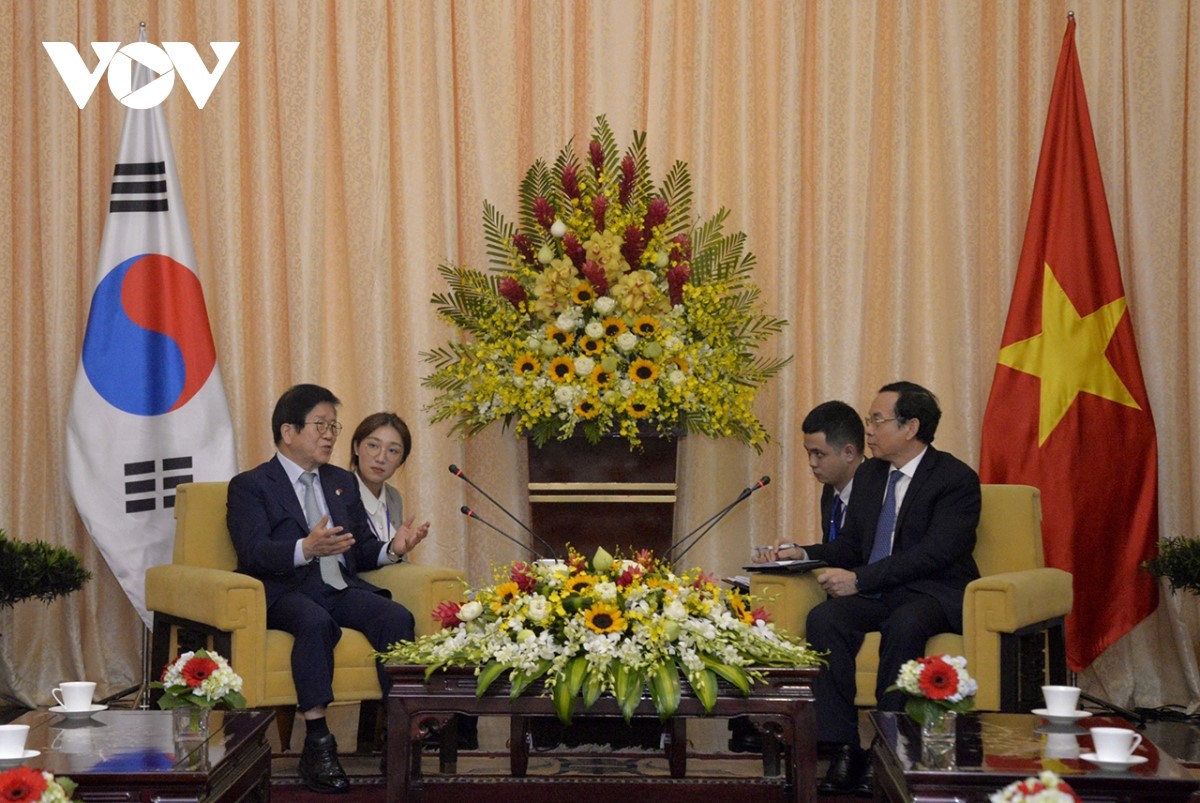 박병석 국회의장은 호찌민시 당위원회 응우옌 반 넨 서기에게 호찌민 거주 한국인 공동체에 관심을 기울여주기 바란다고 밝혔다 [사진: VOV] |