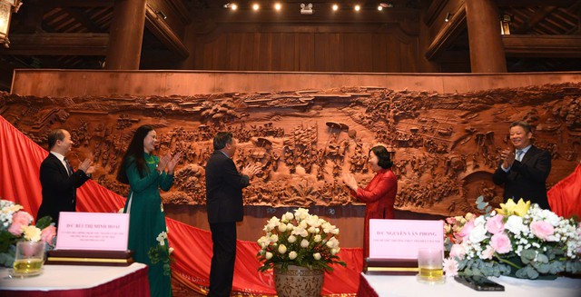 이 대형 목판화 작품은 베트남 기록 2개를 달성한 것으로 알려져 있다. 희귀한 껌(Cẩm) 나무로 제작된 이 목판화는 길이 8.33m, 너비 1.70m의 크기로, 과거 어린 시절 공부부터 과거(科擧) 시험을 거쳐 황금 명단에 이름을 올린 후 왕의 은사를 받아 고향으로 돌아와 조상께 예를 올리는 ‘금의환향’ 의식까지 일련의 과정을 생동감 있게 재현한다.