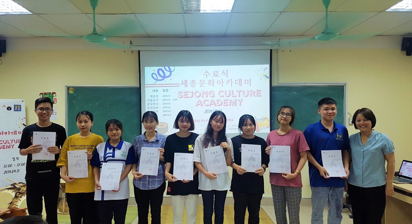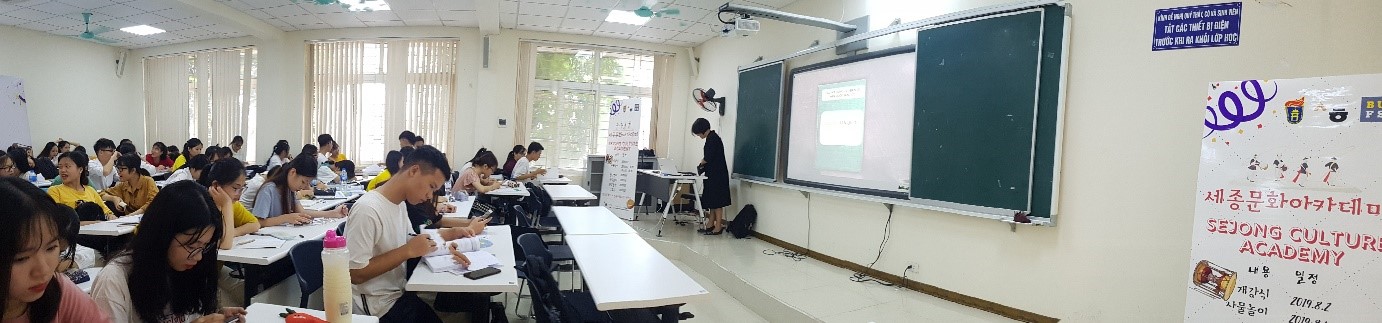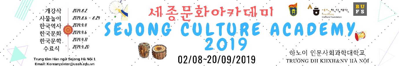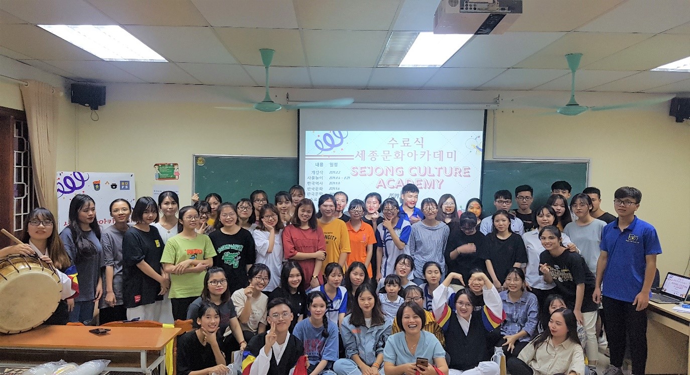 2019 세종문화아카데미는 베트남 및 다른 국가의 세종학당들의 연례활동이다. 올해 하노이 제1세종학당은 한국문화 홍보, 특히 인문사회대학교 학생들의 한국 역사, 문화 지식 등에 대한 체험을 위해 이 행사를 개최했다.