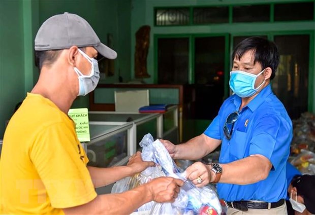 지원선물을 받게 되는 봉쇄구역 거주민 [사진: 베트남통신사] |