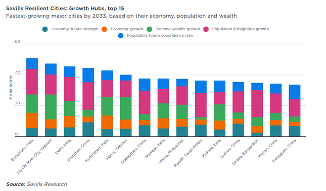 세빌스에 따르면 해당 지표는 2033년까지 전 세계 230개 도시의 경제 요소들을 분석해 가장 빠르게 성장하는 도시 순위를 매긴다. 베트남 호찌민시는 인도의 벵갈루루(Bengaluru)시에 이어 2위를 차지했다.
