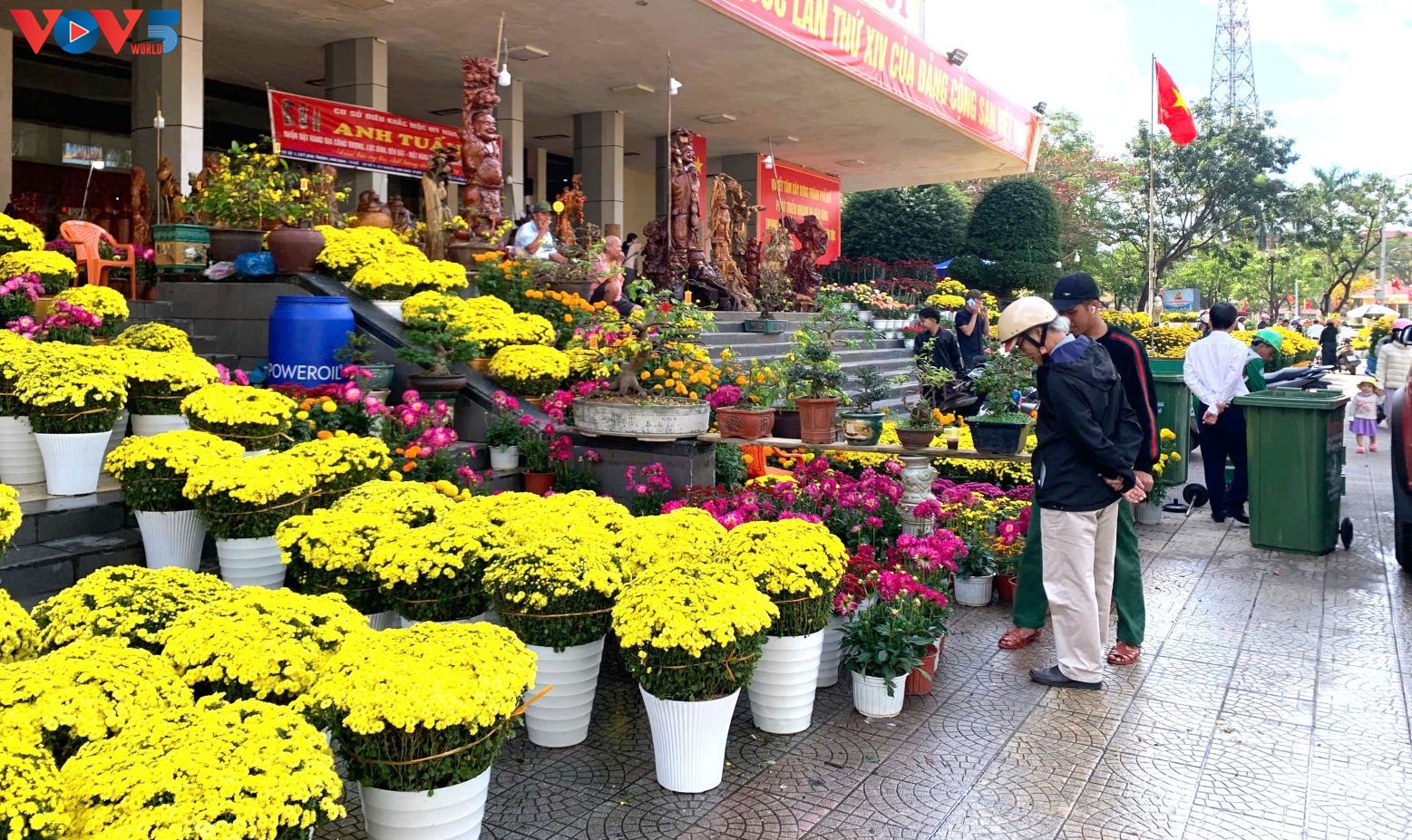 후에 시민들에게 국화는 설마다 거의 빠질 수 없는 선택이다. 경제적 여건이 서로 다르더라도 많은 가정은 집 앞에 국화 화분 한 쌍을 놓기 위해 노력한다. 이는 국화가 가족의 화합과 풍요, 그리고 순조로운 새 출발의 상징으로 여겨지기 때문이다. 올해는 홍수의 영향으로 생산량이 예년보다 감소했지만, 아름다운 화분들은 여전히 고객들에게 빠르게 판매되고 있다.