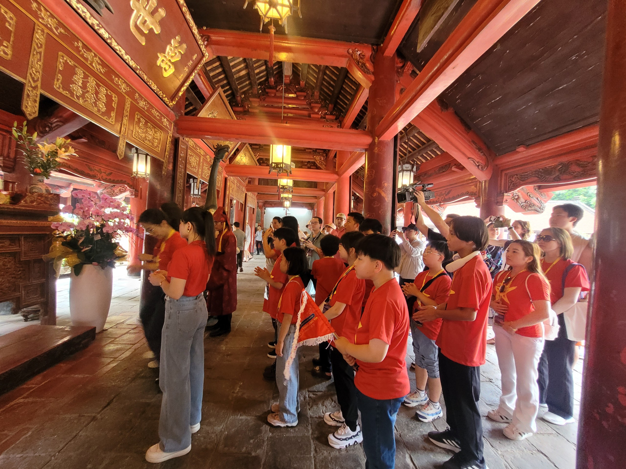 한편 하노이 문묘-국자감 유적지를 방문했을 때 학생들이 베트남 최초의 대학교인 문묘-국자감에 대한 설명을 들었고 문화 명인인 쭈 반 안(Chu Văn An) 스승과 유네스코에 의해 세계 자료유산으로 인정된 82개 박사 비석 등에 대해 소개를 들었다.