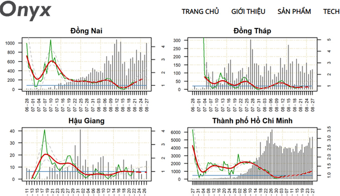 베트남 내 각 성시의 코로나19 상황을 예측하는 그래프 [사진 출처: vnexpress.net] |