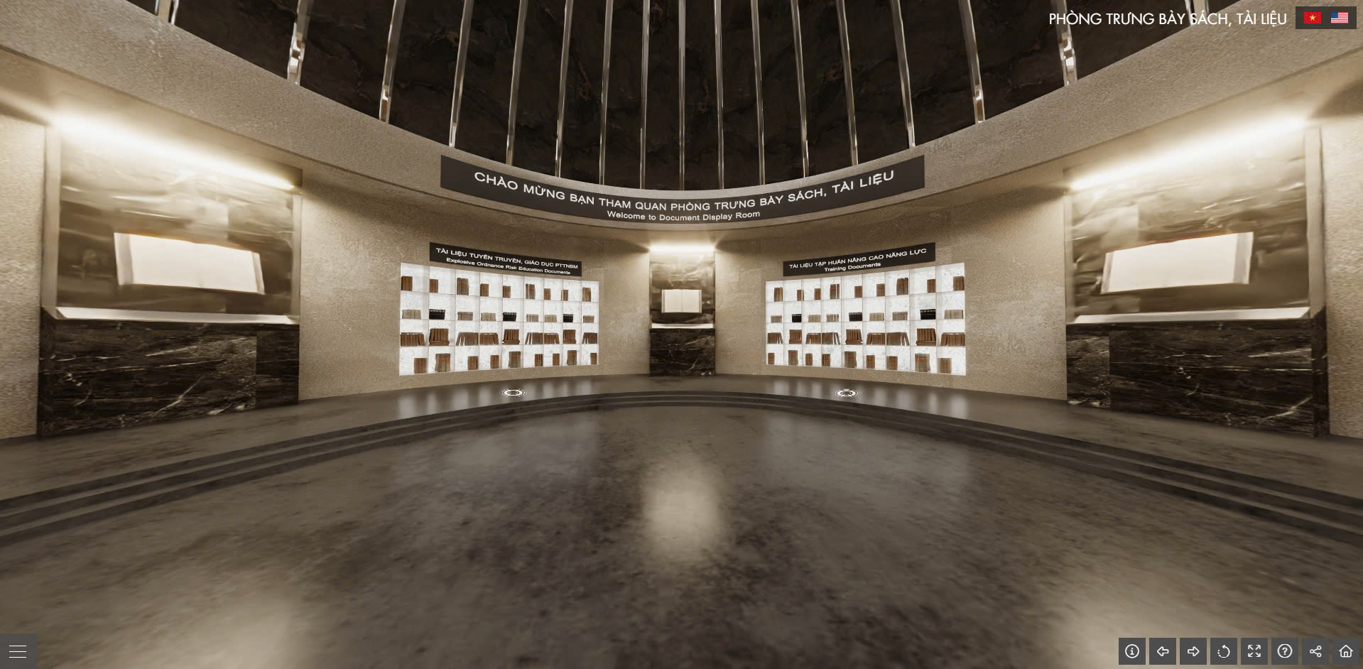 가상 전시실 형태로 디자인된 이 도서관은 영화관(다큐멘터리, 뉴스, 지뢰 및 폭발물 사고 지방 교육 애니메이션), 3D 및 2D 모형들로 구성된 지뢰 및 폭발물 전시공간, 지뢰 및 폭발물 후유증 극복 및 사고 방지 활동에 대한 사진 전시실 등과 같은 기능을 편리하게 사용할 수 있도록 디자인됐다.