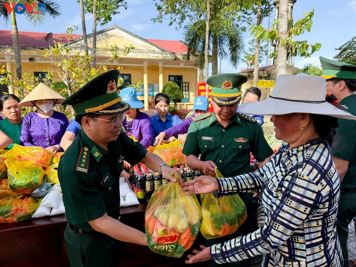 (VOVWORLD) - 12월 18일, 껀터시 라이호아(Lai Hòa) 국경수비대 주둔지에서 껀터(Cần Thơ)시 국경수비대 지휘부는 껀터시 군사령부 여성협회와 협력해 빈곤층을 위한 0동(무료) 상품으로구성된 ‘특별장터’ 모델프로그램을 개최했다.