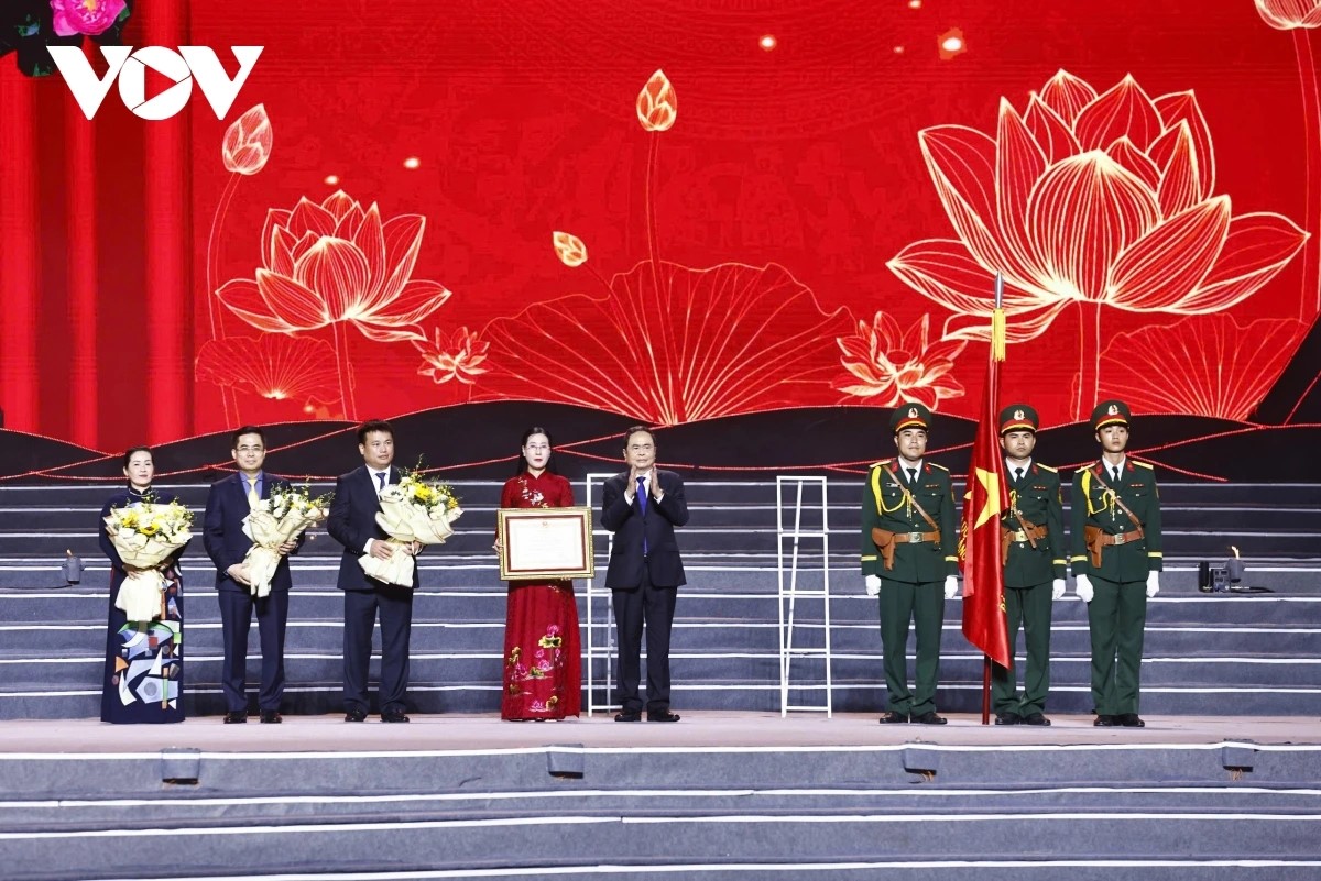 쩐 타인 먼 국회의장은 당과 국가를 대표하여 꽝응아이성 당위원회, 지방정부 및 시민들에게 1등급 노동훈장을 수여했다. (사진: VOV) |