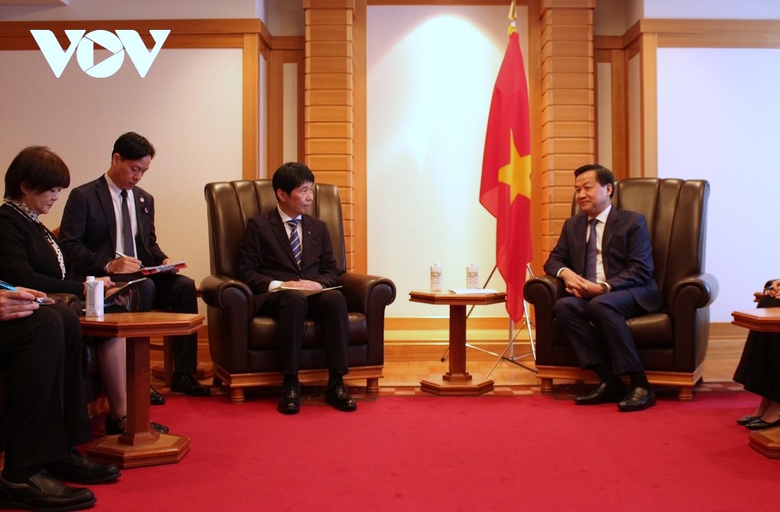 야마모토 이치타 일본 군마현 지사와 레 민 카이 부총리 (사진: VOV) |