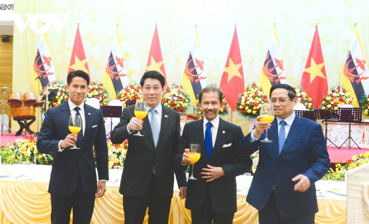 이에 대한 답사에서 하사날 볼키아 브루나이 국왕은 양국이 농업, 에너지 등 모든 분야에서 무역 연결과 협력을 지속적으로 심화하는 것이 공동의 이익을 가져올 뿐만 아니라, 양국 산업 및 기업의 역량을 강화하고 식량 및 에너지 안보를 보장하는 데도 기여할 것이라고 강조했다. 아울러 국왕은 아세안 회원국들과 함께 ‘2045년 아세안 공동체 비전’을 달성하기 위해 베트남과 지속적으로 긴밀히 협력해 나가기를 바란다고 밝혔다.