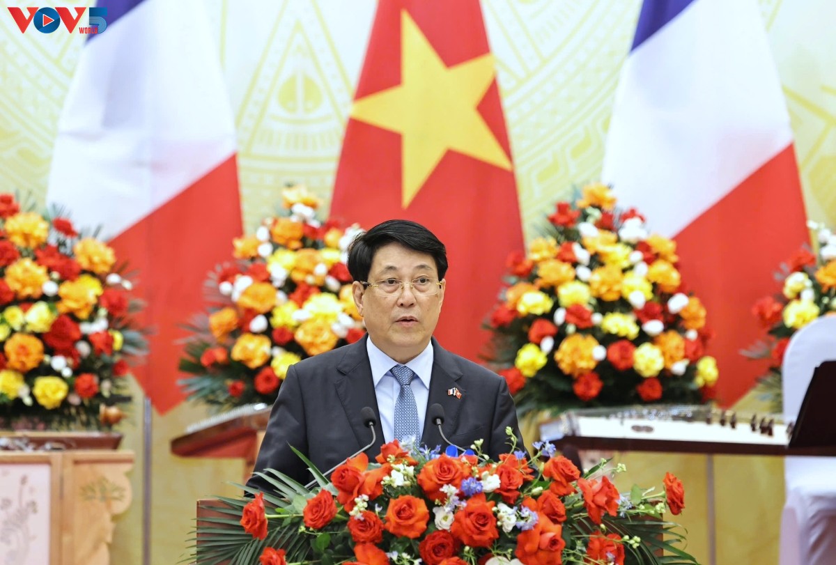 이 자리에서 르엉 끄엉 국가주석은 현재 베트남이 오는 2045년까지 고소득 선진국으로 도약하기 위해 새로운 발전 단계에 들어서려 노력하고 있다고 강조했다. 따라서 베트남의 전통 우호 파트너인 프랑스가 베트남의 번영하고 문명한 국가를 건설하는 여정에 계속 함께해 주기를 바란다고 국가주석은 전했다.
