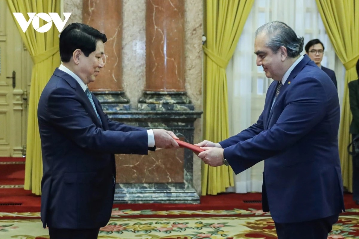 볼리비아 대사의 신임장을 제정하는 르엉 끄엉 국가주석 (사진: VOV) |