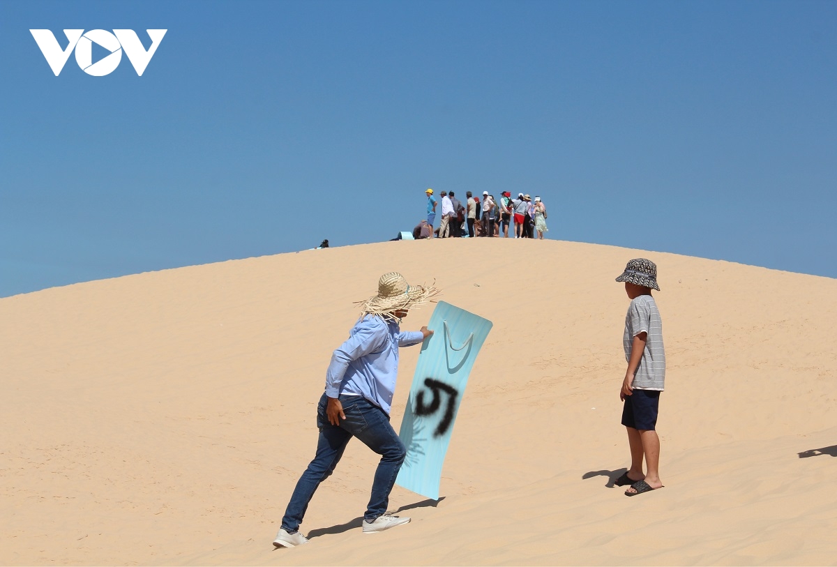 바우짱(Bàu Trắng) 모래 언덕에서 체험하는 관광객들 |