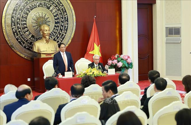 주중 베트남 대사관 직원들과 만남을 가진 팜 민 찐 총리 (사진: 베트남 통신사) |